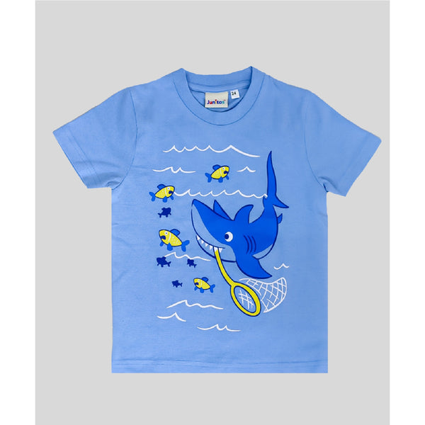Dive into fun with the Blue Cotton Whale Printed T-Shirt from Junitos. Crafted from soft and breathable cotton, this t-shirt ensures your little one stays comfortable all day long. The charming whale print adds a...