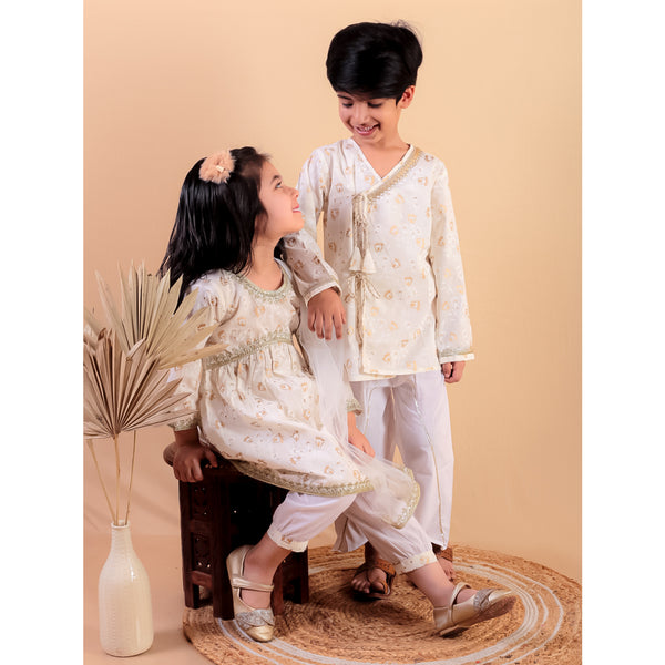 Dress your little ones in the elegant Siblings' Beige Pure Cotton Golden Print Kurti and Pajama set from Junitos. Crafted from soft, breathable pure cotton, these coordinated outfits ensure maximum comfort for your children. The...