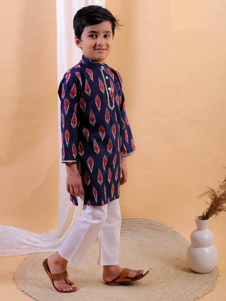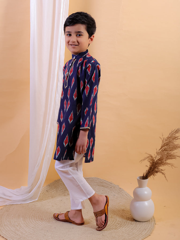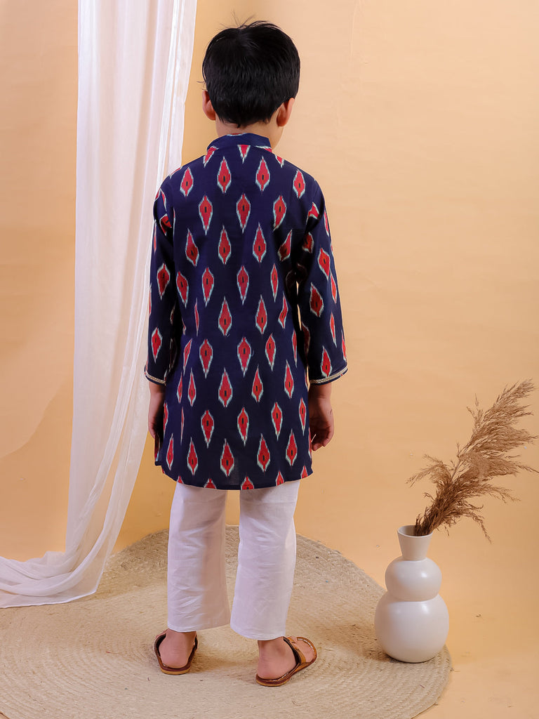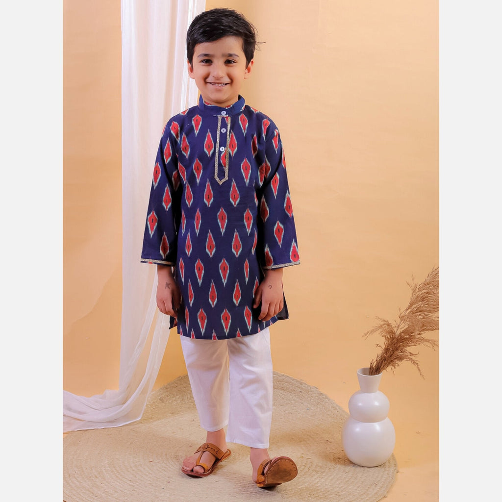Adorned with intricate prints reminiscent of nautical motifs, the kurta exudes a sense of maritime elegance and charm. The deep navy blue hue adds a touch of depth and richness, making a statement with its classic yet contemporary appeal.
