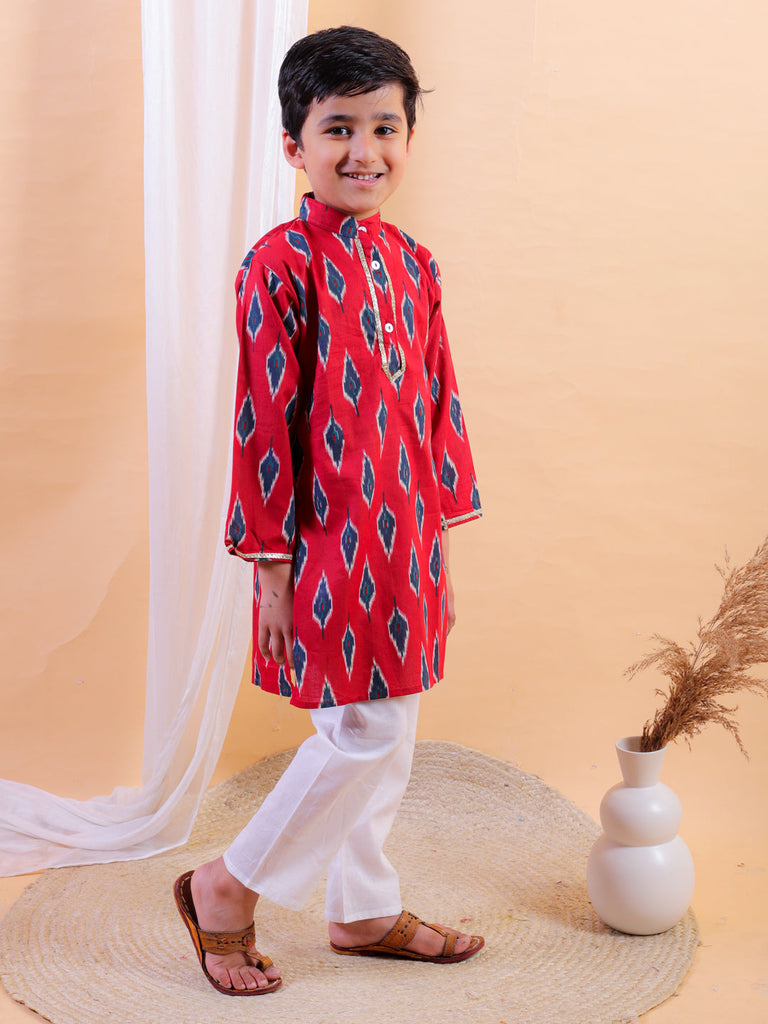 Elevate your ethnic wardrobe with our Red Pure Cotton Printed Kurta paired elegantly with matching Pajama bottoms, exuding nautical charm and timeless sophistication. Crafted from premium cotton fabric, this ensemble offers both comfort and style, making it a versatile choice for various occasions.
